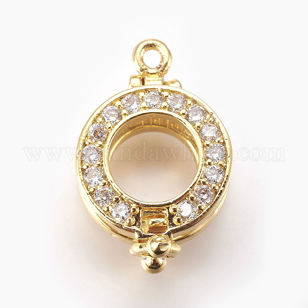 • Настоящее золото 18K Латунный микропаве из циркония, подвеска навесная навесная, с петлей, плоско-круглые, прозрачные, реальный 18 k позолоченный, 20x13x10 мм, отверстие : 1.4 мм