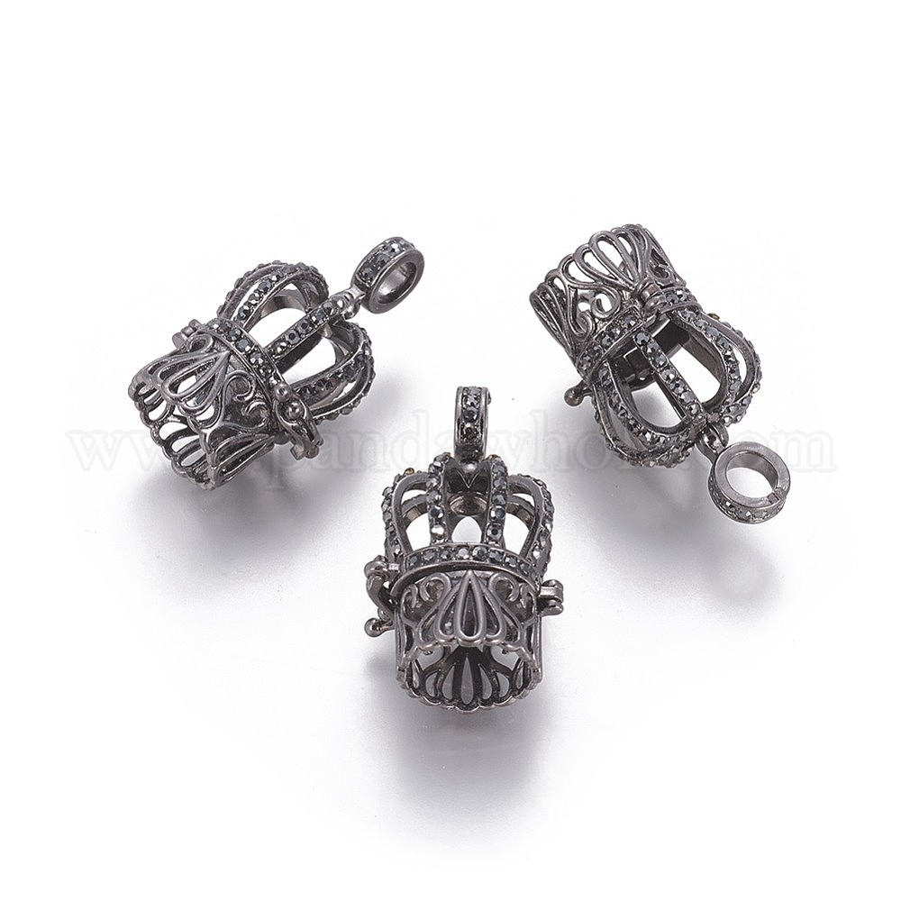 • Черный Цвет Металла Латунный горный хрусталь филигранная бусина, корона, металлический черный , 35x20.5 мм, отверстия: 5 mm, Внутренний диаметр: 12 mm