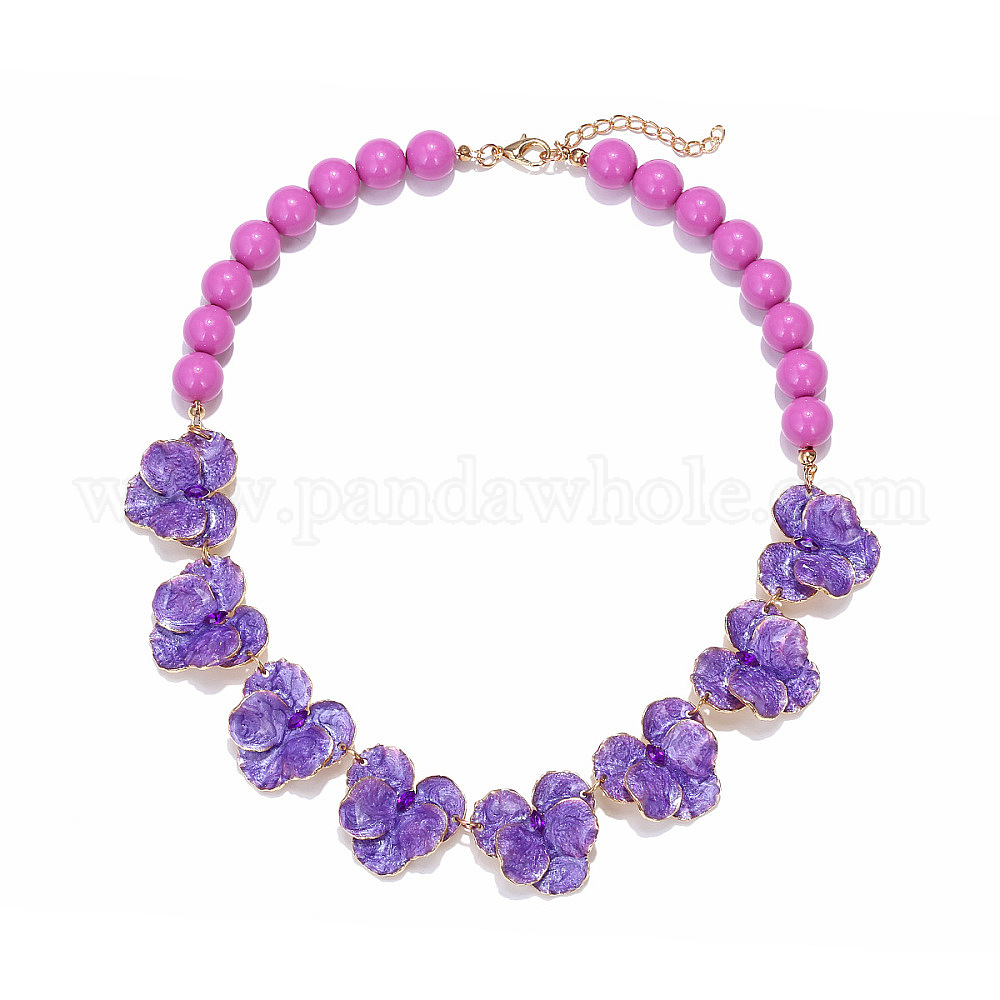 Эмалевые цветочные ожерелья из цинкового сплава, круглые ожерелья из смоляных бусин, золотые