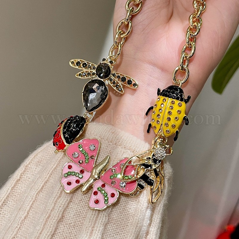 Нагрудник-подвеска в виде божьей коровки, бабочки, пчелы или стрекозы из эмалированного сплава со стразами., золотые