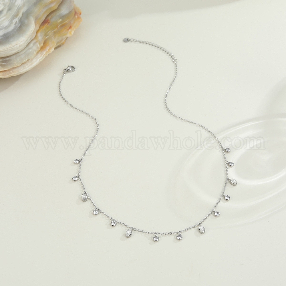 304 Ожерелье-нагрудник из нержавеющей стали с прозрачными кубическими циркониями, овальной, плоской и круглой формы, с кисточками, для женщин
