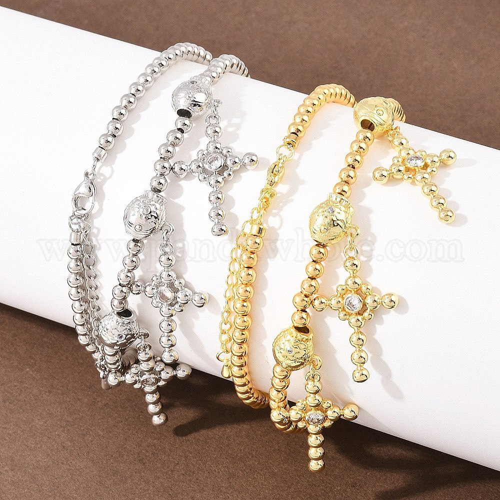 • Платина Женское ожерелье-нагрудник из латуни с микропаве из прозрачных кубических цирконий в виде креста., долговечный, стойки покрытие, без свинца и без кадмия, платина, 17.60 дюйм (44.7 см)