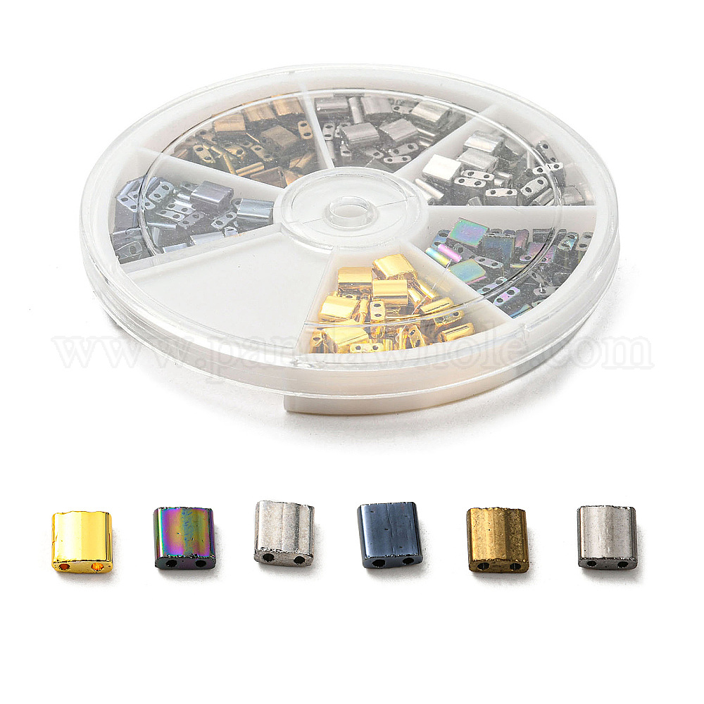 • (52) Непрозрачная лаванда 240шт 6 цвета стеклянный бисер с гальванопокрытием, 2-луночное, прямоугольные, разноцветные, 5x4.5~5.5x2~2.5 мм, отверстие : 0.5~0.8 мм, 40 шт / цвет