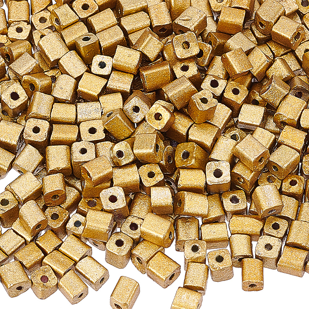 • с Золотистым Покрытием 2000шт 6/0 стеклянные бусины с покрытием из запекаемой краски, круглое отверстие, металлических цветов, кубические, с золотым покрытием, 3~7x3x3 мм, отверстие : 0.5 мм
