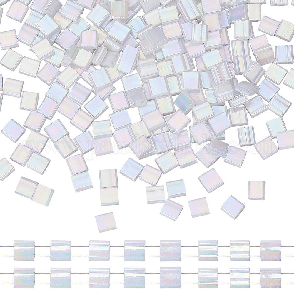 • Белый 250шт 2-отверстия непрозрачные стеклянные бусины, аб цвета, квадратный, белые, 5x4.5~5.5x2~2.5 мм, отверстие : 0.5~0.8 мм