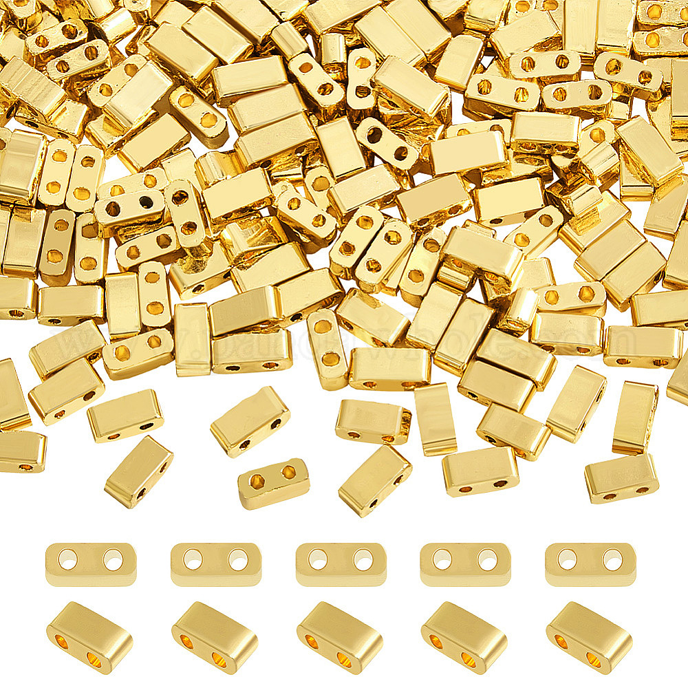 240шт. гальванизированные стеклянные бусины, 2-луночное, прямоугольные
