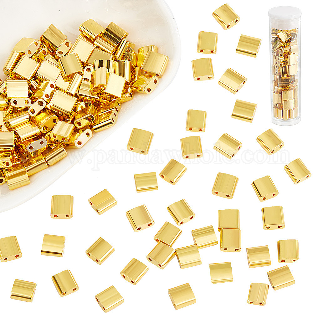 140шт. гальванизированные стеклянные бусины, 2-луночное, прямоугольные