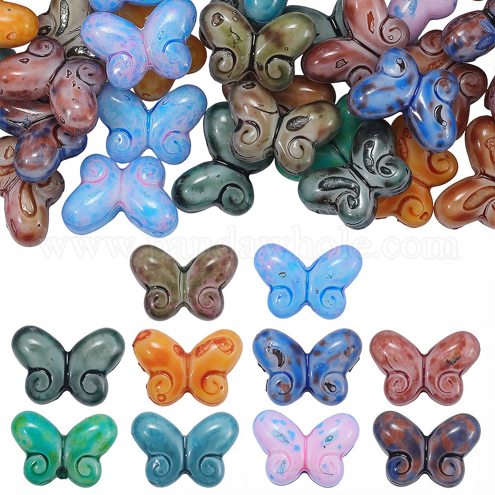 • (52) Непрозрачная лаванда 50 шт. стеклянные бусины с краской для запекания Пикассо, бабочка, разноцветные, 10x14.5x5.5 мм, отверстие : 1 мм