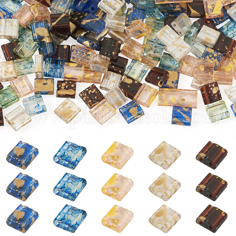 175 шт. 5 цвета 2 непрозрачные стеклянные бусины с отверстиями, , квадратный