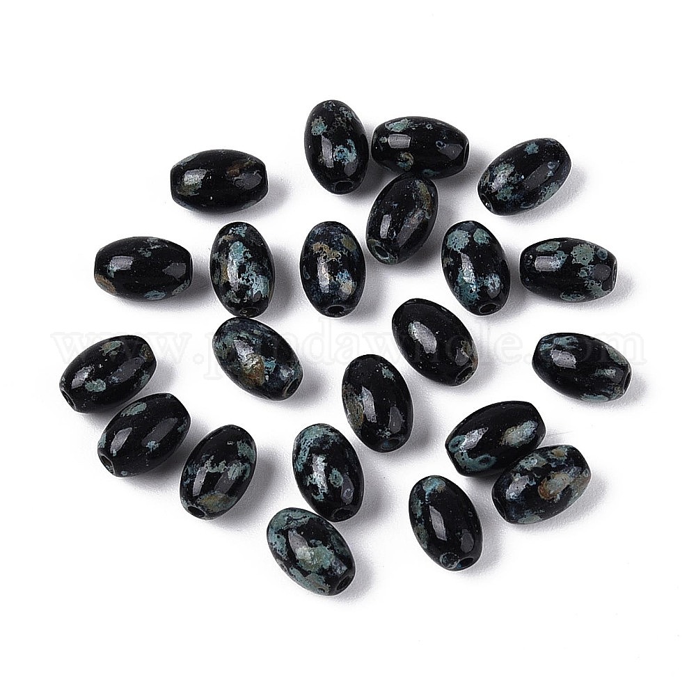 • Черный Выпечка краска стеклянные бусины, рис, чёрные, 6.5~7x4~4.5 мм, отверстие : 0.9~1.2 мм, Около 263 шт / 50 г