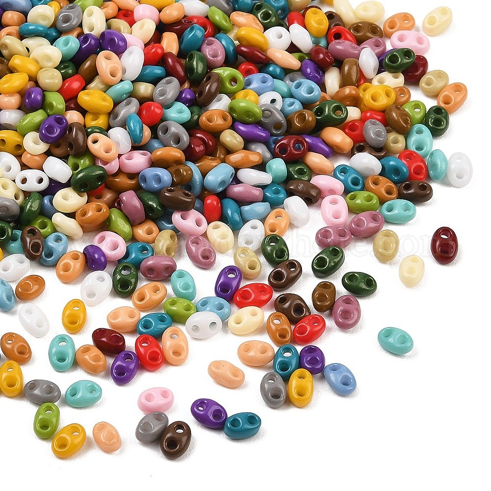 Стеклянный бисер непрозрачных цветов, 2-луночное, овальные
