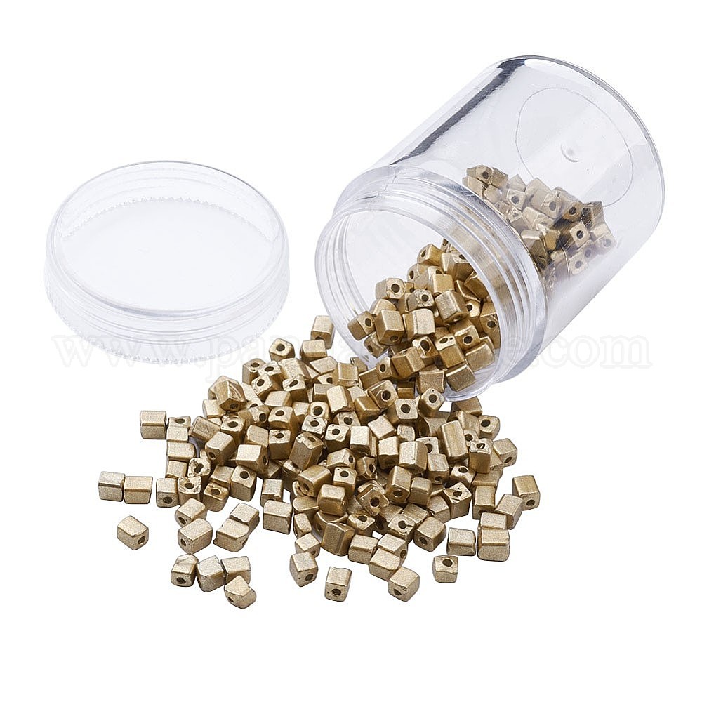 Позолоченные стекло бисер, круглое отверстие, кубические