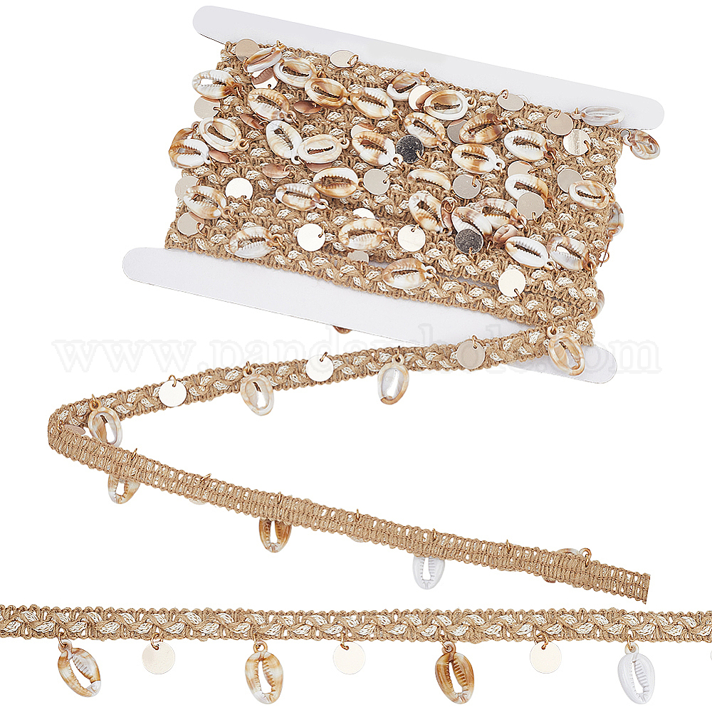 5 метров полиэстеровой нити и ленты с бисерной отделкой из пластиковых ракушек, для аксессуаров для одежды, с картонной карточкой