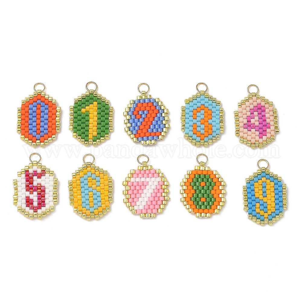 Бисерные цифры 0~9 подвески, подвески из стеклянных бусин с узором ткацкого станка, с целью перехода в кольце