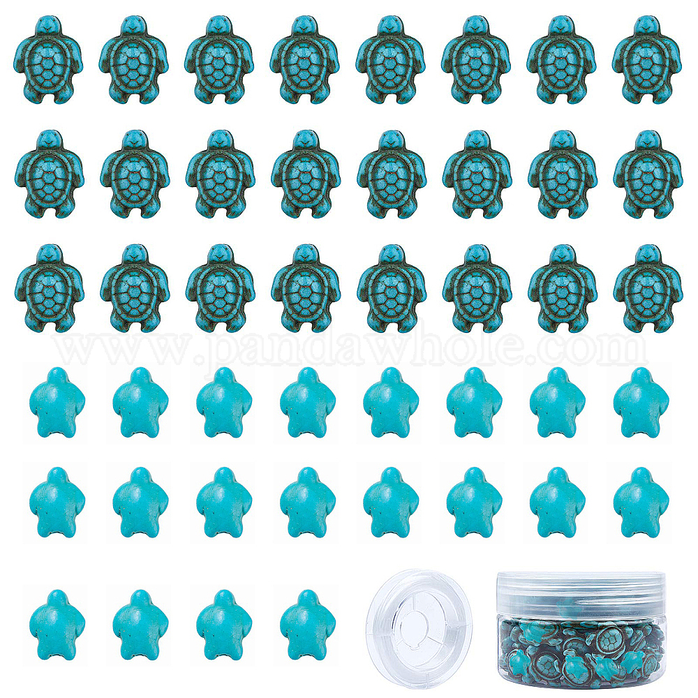 100шт. 2 размеры окрашенные синтетические бирюзовые бусины нити, черепаха и 1 свернуть эластичную бисерную эластичную нить