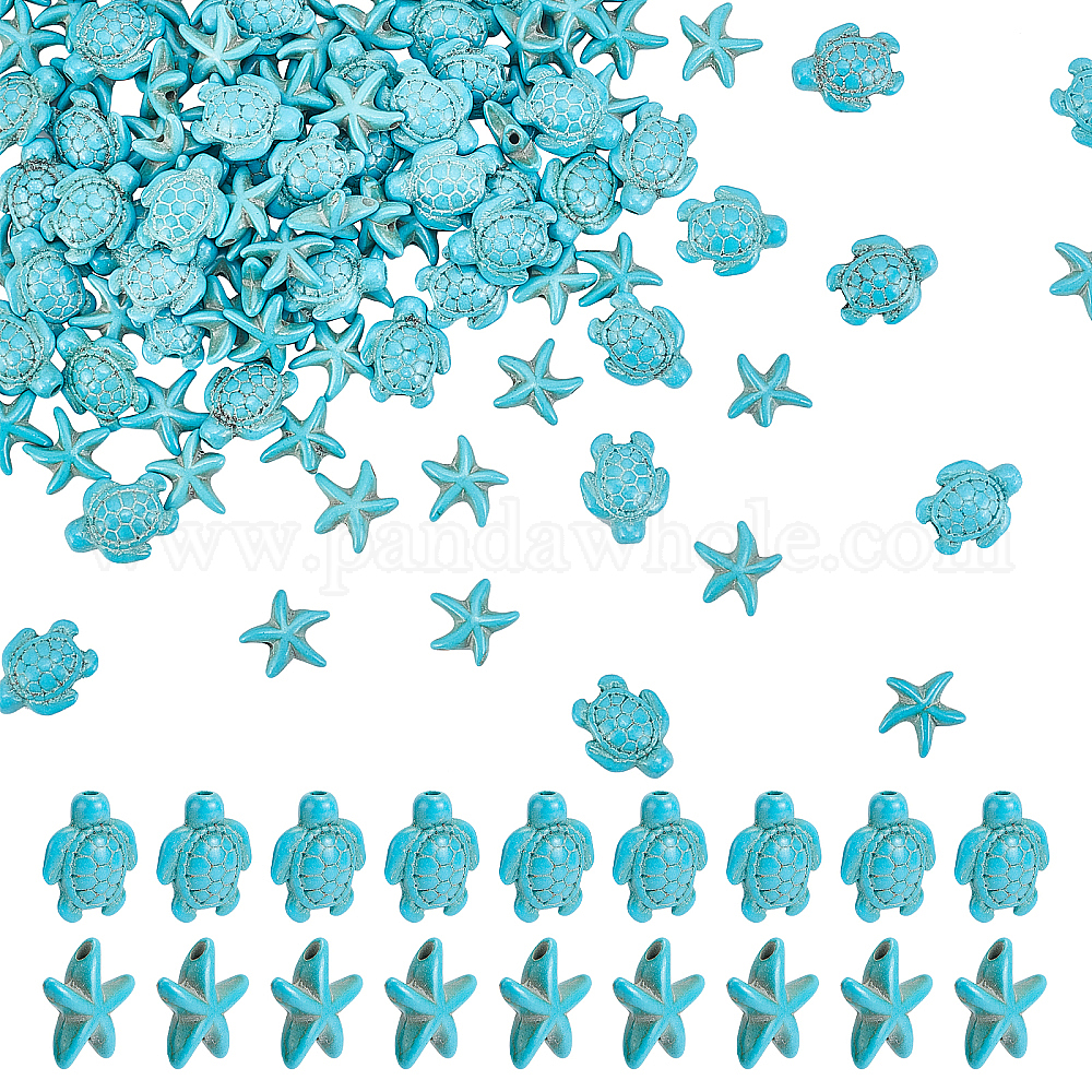 4 нити 2 стиль синтетические бирюзовые бусины нити, окрашенные, морская звезда и черепаха