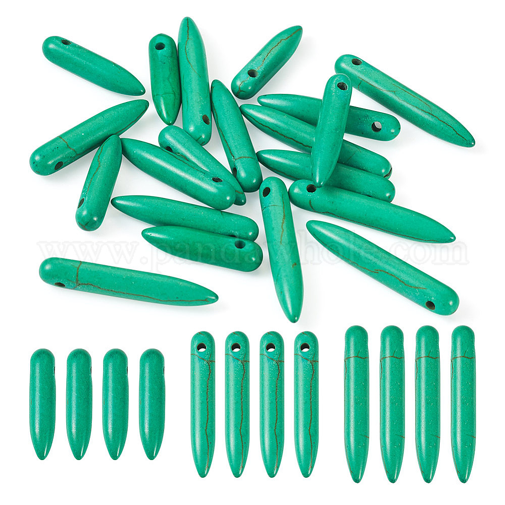 • Синтетическая Бирюза 20шт синтетические бирюзовые градуированные бусины с шипами, бивень, окрашенные, Топ пробуренной, 20~49x4.5~5, отверстие : 1.2 мм