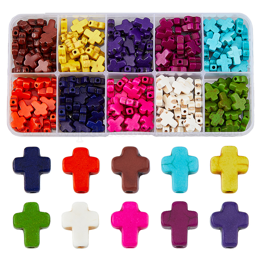 250шт 10 цвета синтетические бирюзовые бусины, окрашенные, крестик