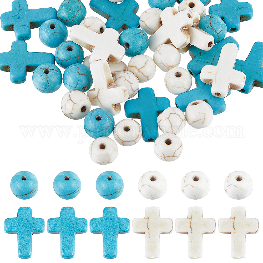 8 нити 4 стили синтетические бирюзовые бусины нити, окрашенные, крест и круглый