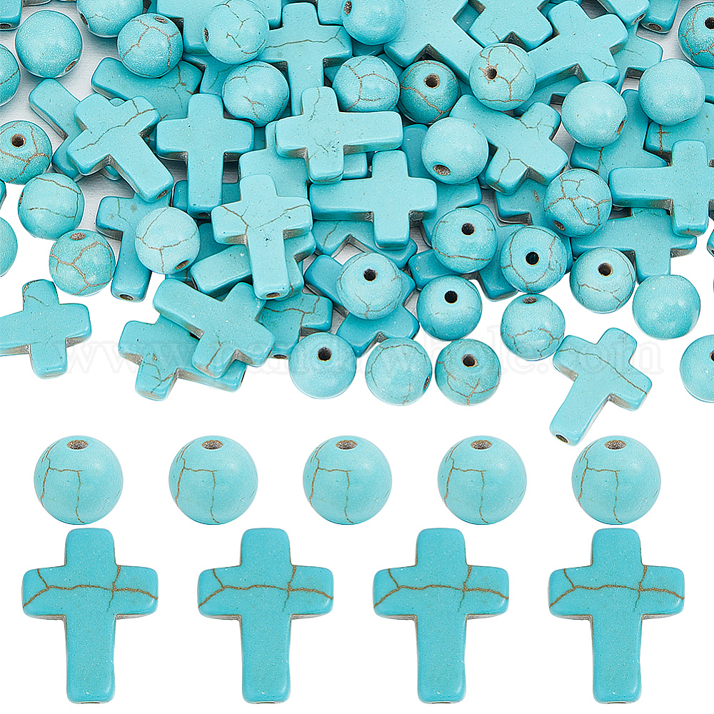 160 шт. 2 стили синтетические бирюзовые бусины, окрашенные, крест и круглый