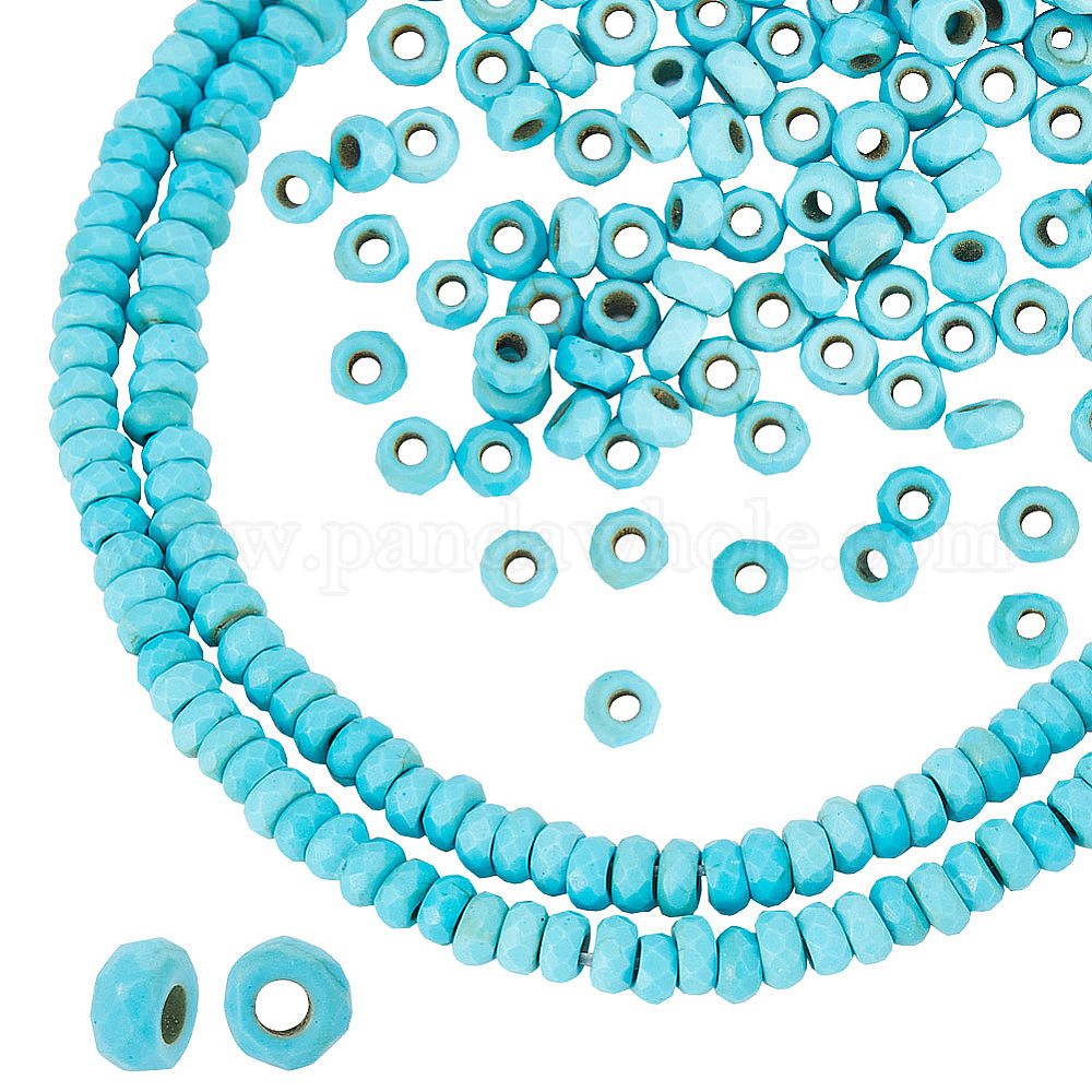 2 нити граненые рондель синтетические бирюзовые бусины нити, окрашенные