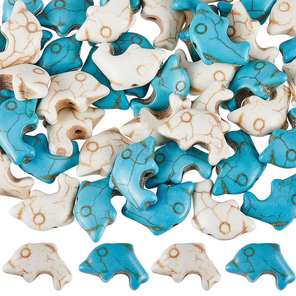100шт 2 цвета синтетические бирюзовые бусины нити, дельфин