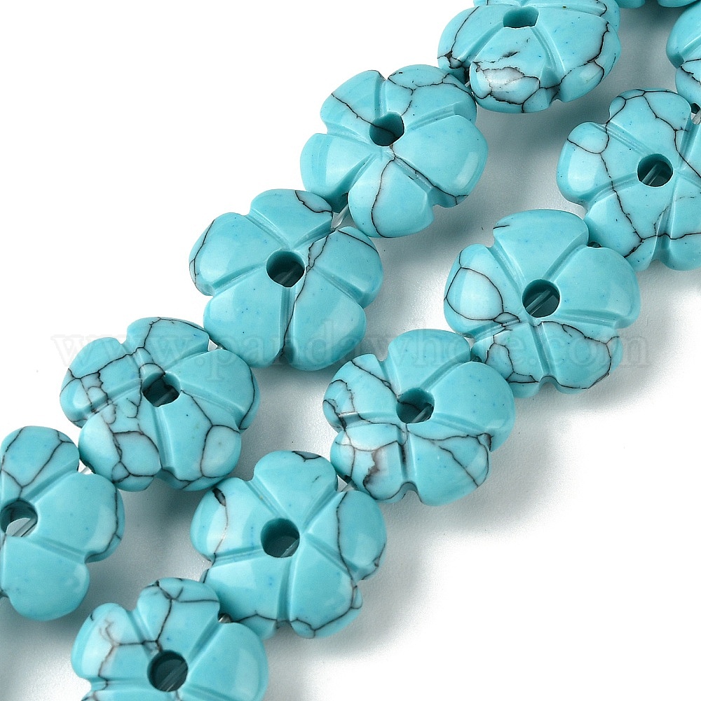 • Синтетическая Бирюза Окрашенные синтетические бирюзовые бусы нити, цветок, 14x14x5.5 мм, отверстие : 1.2 мм, около 29 шт / нитка, 14.80'' (37.6 см)