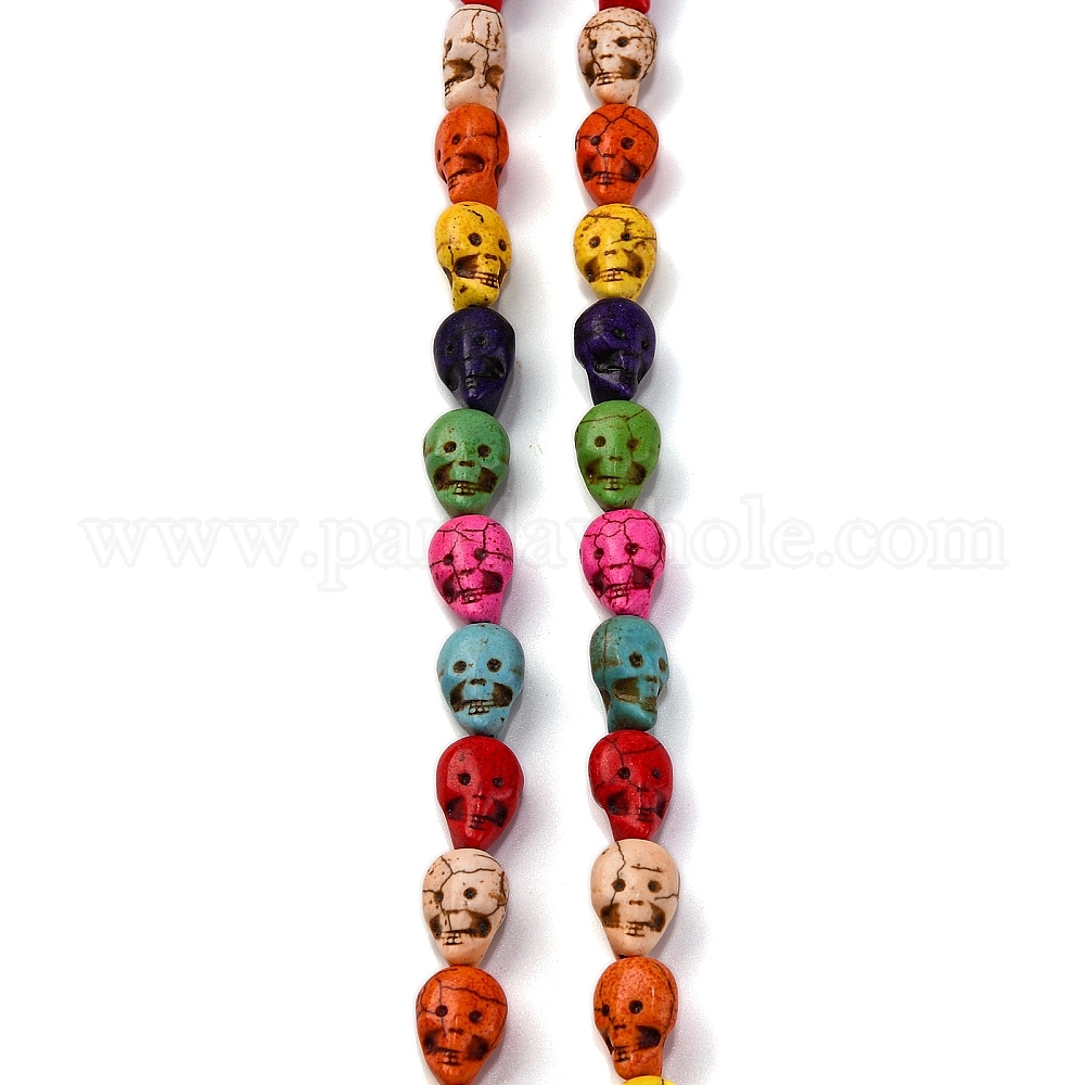 Синтетических нитей бирюзовые бусы, окрашенные, череп