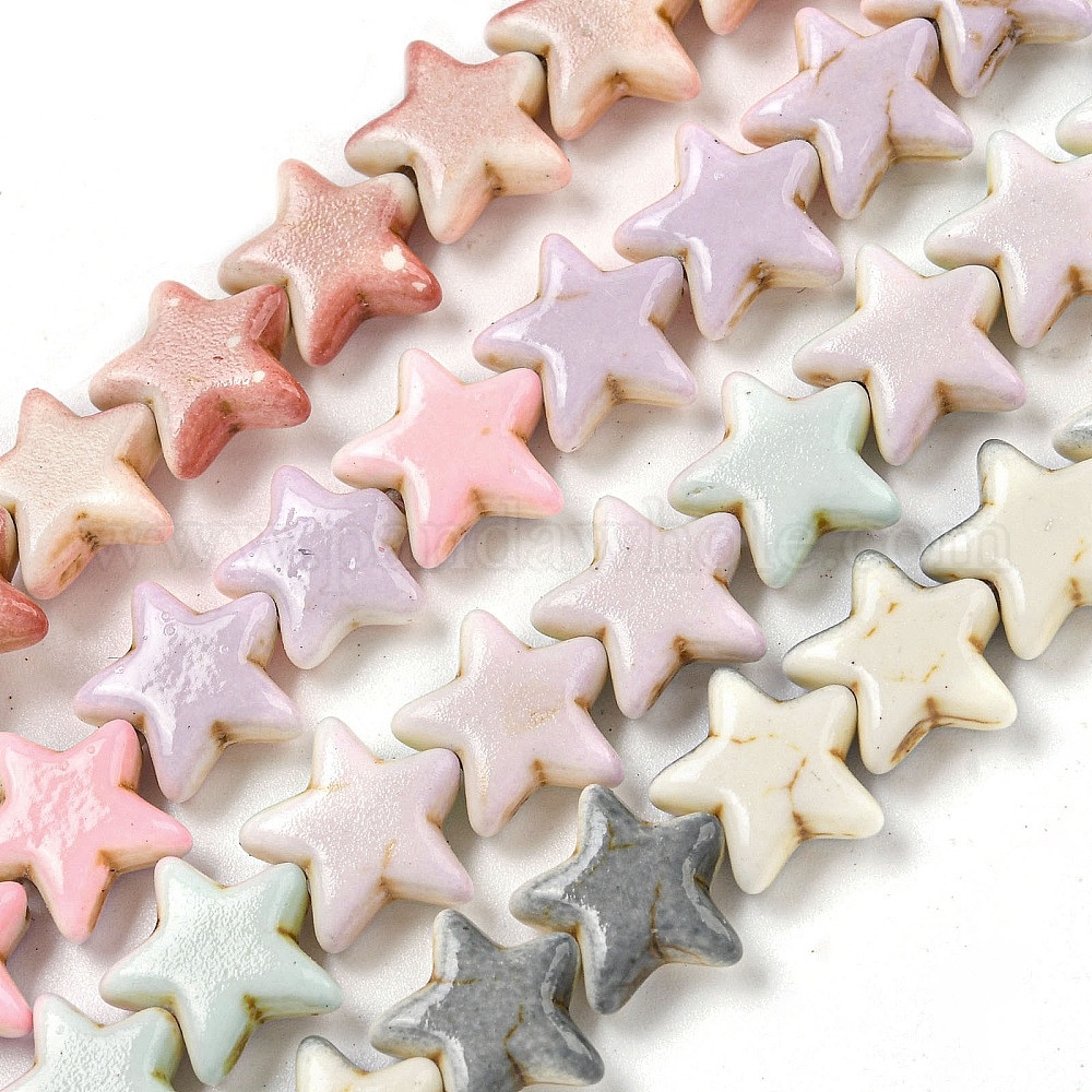 • Pink Синтетические бирюзовые бусины, покрытые краской для выпечки, с эмалью, морская звезда, розовые, 11.5x9.5x4 мм, отверстие : 1 мм, около 43 шт / нитка, 14.96'' (38 см)