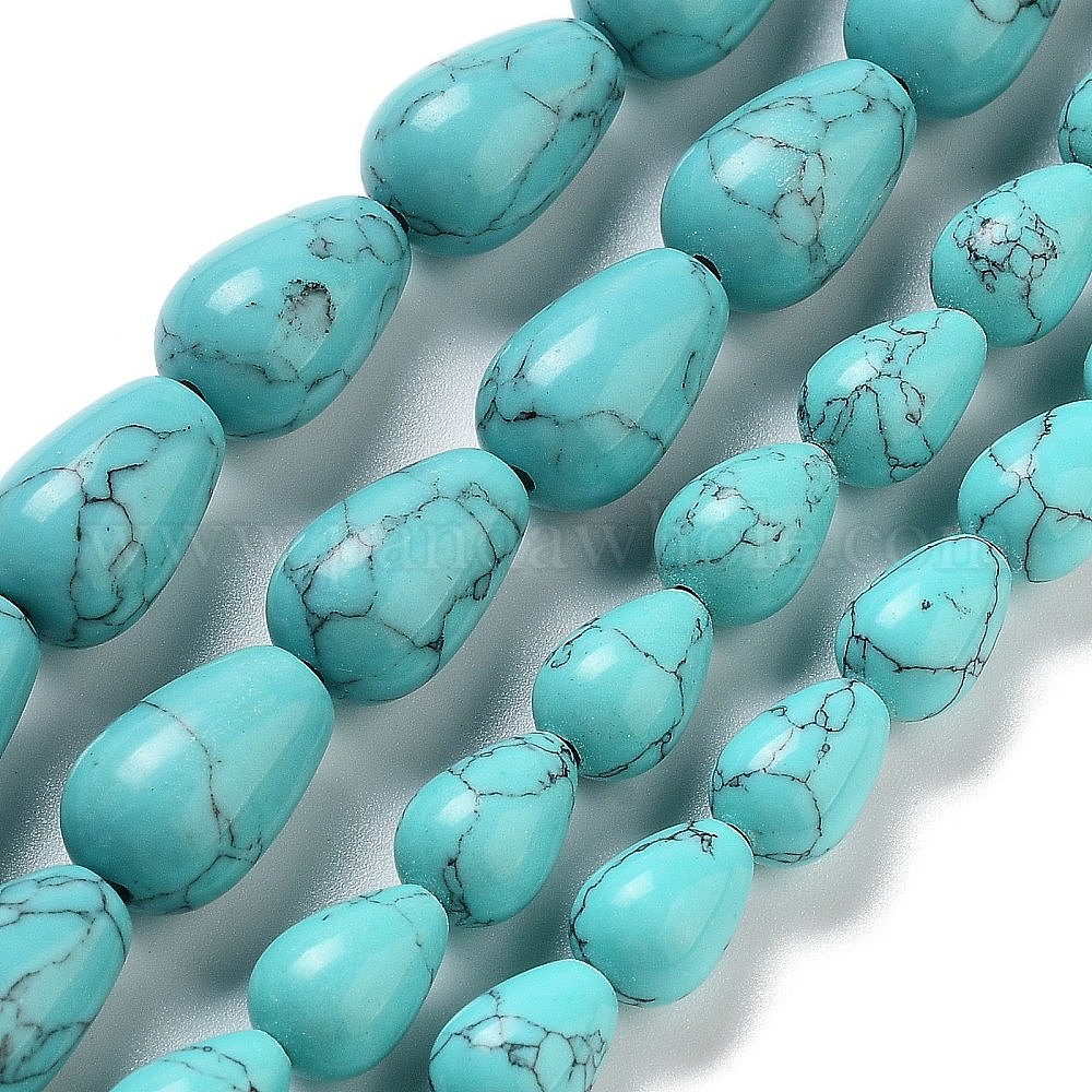 • Синтетическая Бирюза Синтетических нитей бирюзовые бусы, слеза, 9x6 мм, отверстие : 1.2 мм, около 44 шт / нитка, 15.75'' (40 см)