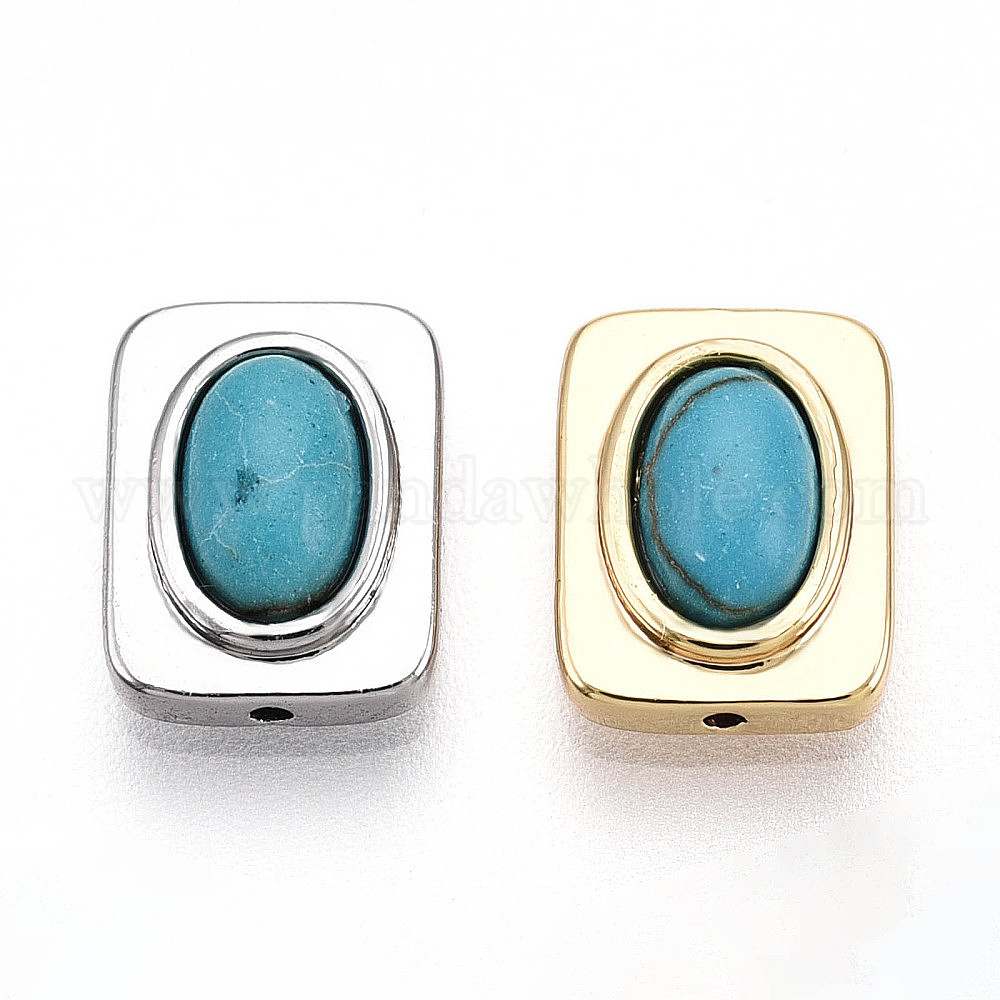 Латунные бусины из синтетической бирюзы, прямоугольные