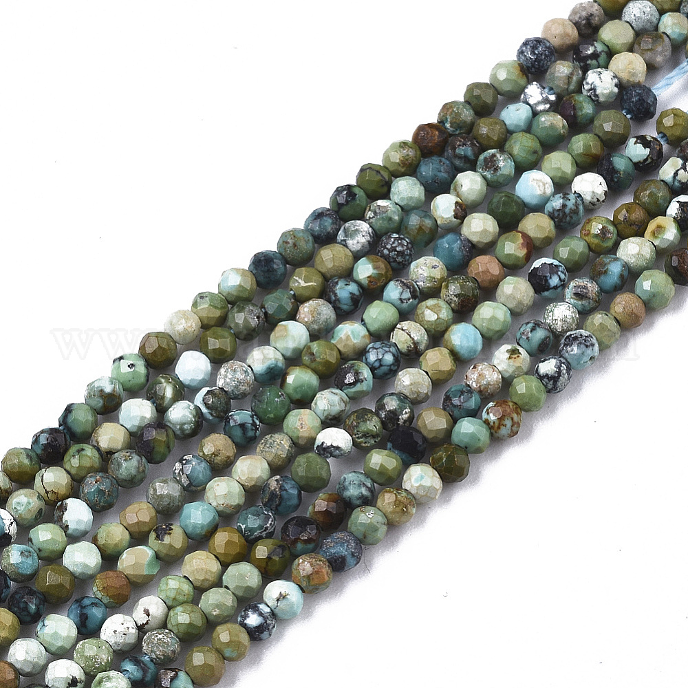 Естественный зеленый бирюзовый нитей бисера, круглые, граненый (32 граней)