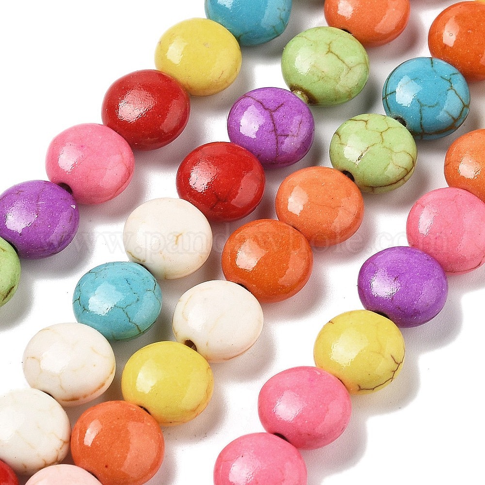 Синтетических нитей бирюзовые бусы, окрашеные, плоско-круглые