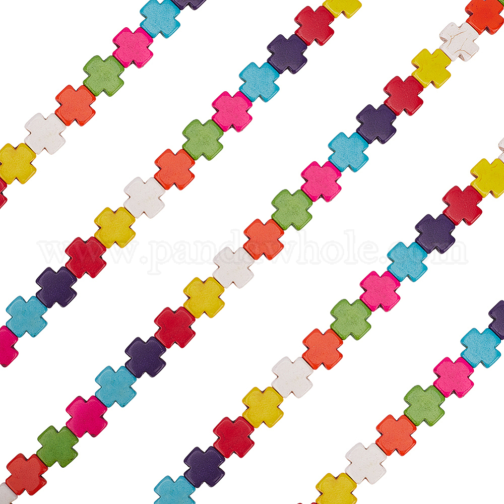 • (52) Непрозрачная лаванда 5 нити синтетические бирюзовые бусины нити, окрашенные, греческий крест, разноцветные, 15x15x4 мм, отверстие : 1 мм, около 27 шт / нитка, 15.4 дюйм