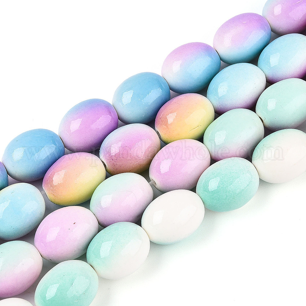С напылением окрашенные синтетические бирюзовые бусинки, овальные, два тона