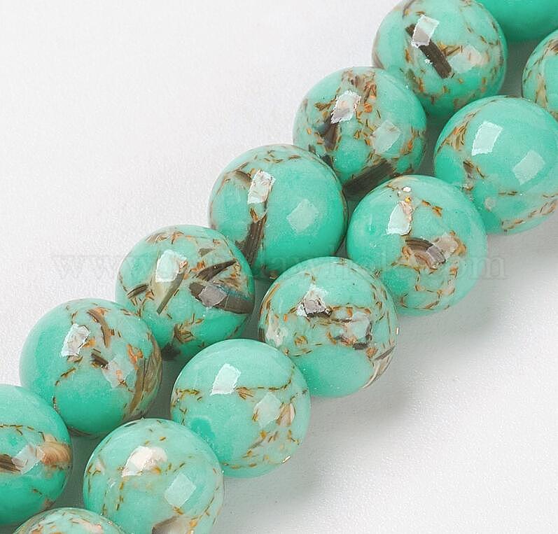 Морские раковины и синтетические бирюзовые нити из бисера в сборе, круглые
