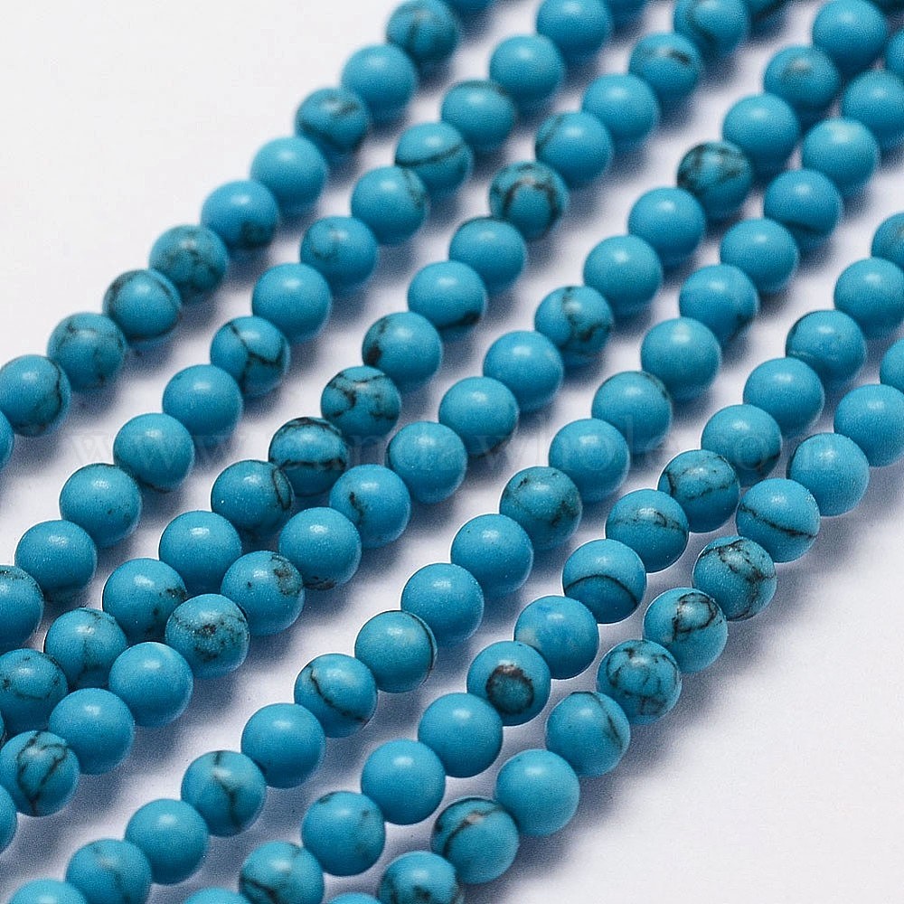 Синтетических нитей бирюзовые бусы, круглые