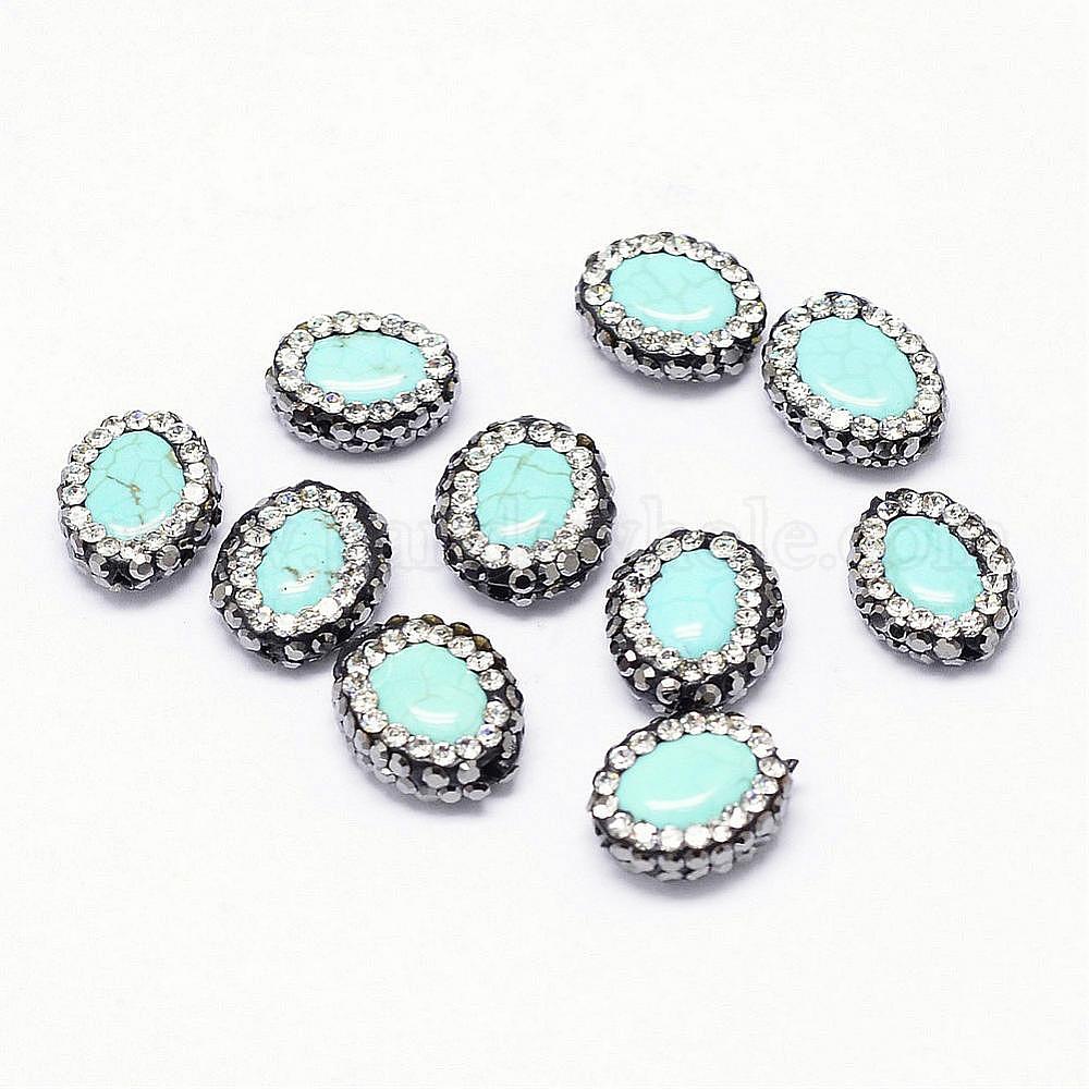Окрашенные синтетические бирюзовые бусины, со стразами, овальные