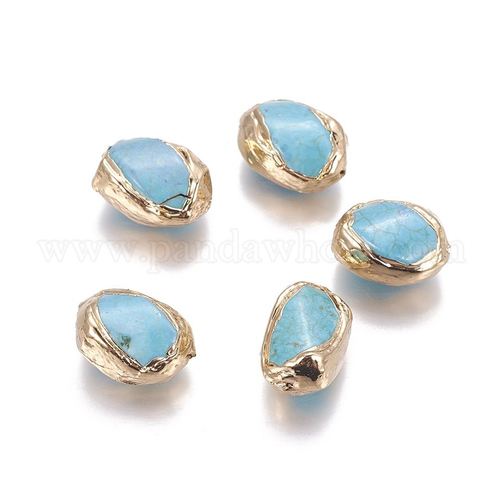 Синтетические бирюзовые бусины, край позолоченный, самородки