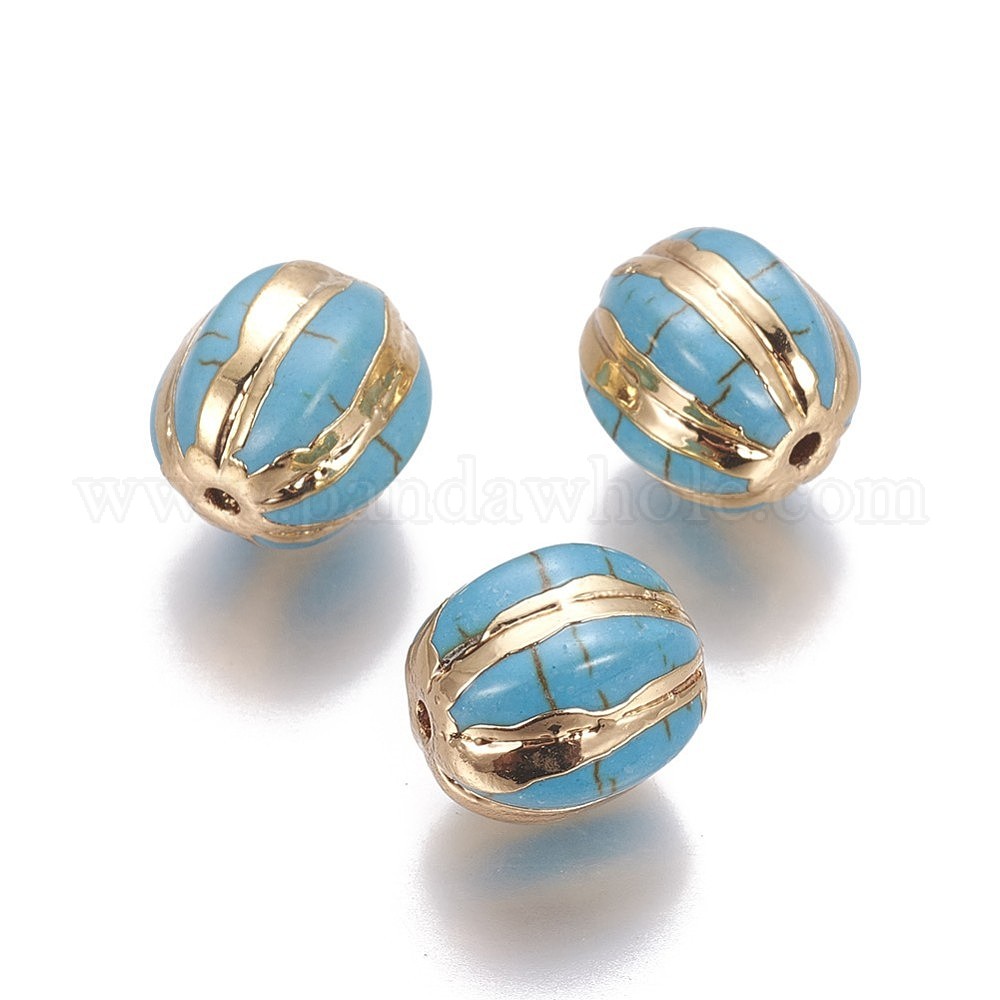 Синтетические бирюзовые бусины, край позолоченный, барабан (00XD27)