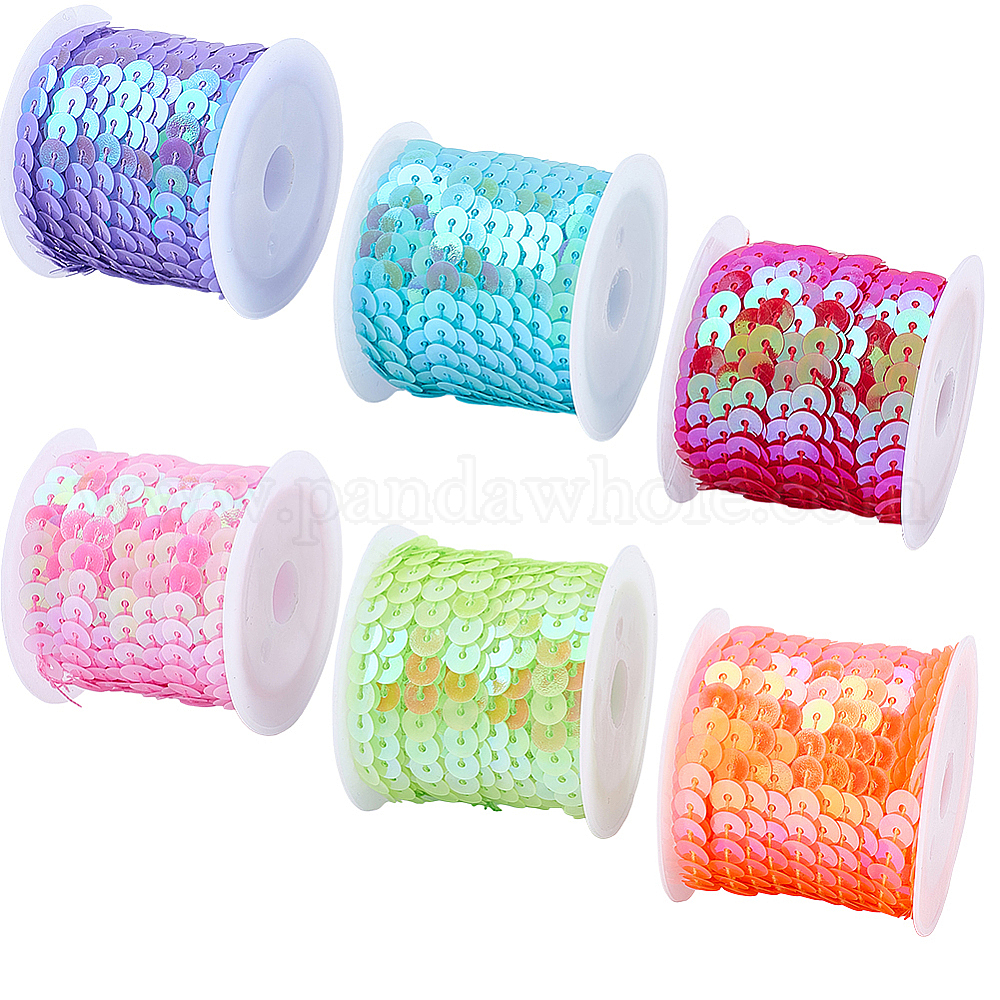 6рулоны 6 цвета экологически чистые пластиковые бусины-пайетки, блестки бисер, Аксессуары для орнаментов, плоско-круглые