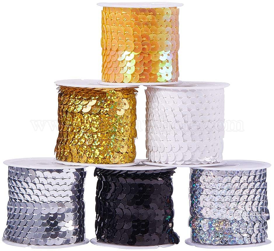 • (52) Непрозрачная лаванда Бусины с пайеткой из экологически чистого пластика, блестки бисер, Аксессуары для орнаментов, плоско-круглые, разноцветные, 6 мм, около 5 м / рулон