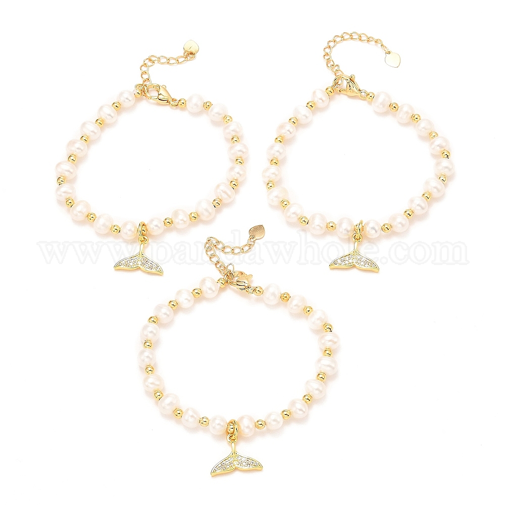 Браслеты с подвесками в форме хвоста кита из латуни с кубическим цирконием, реальный 18 k позолоченный, с натуральной жемчужиной, долговечный