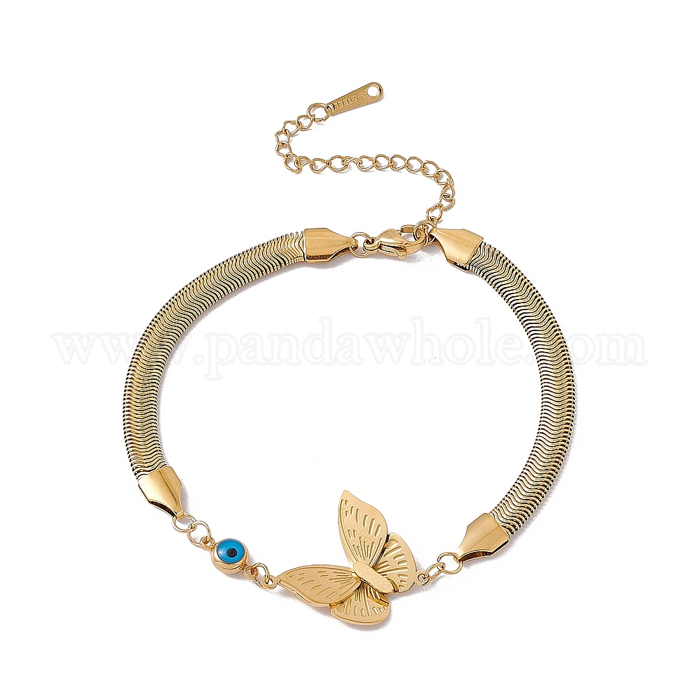 Эмалевый браслет сглаза с плоскими змеиными цепочками, 304 женские украшения из нержавеющей стали, золотые