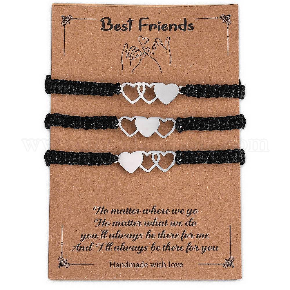 3шт 3 набор браслетов из нержавеющей стали в форме сердца, регулируемые браслеты из нейлонового шнура для семьи лучших друзей