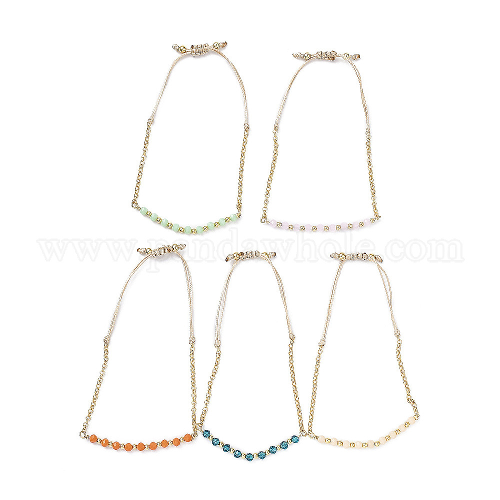 Регулируемый женский браслет из стеклянных бусин и латунных цепочек