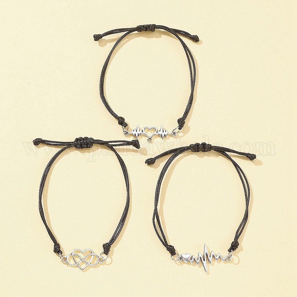 3шт. 3 набор браслетов из сплава со звеньями в виде сердца и бесконечности, регулируемые штабелируемые браслеты из вощеного полиэстера на День святого Валентина