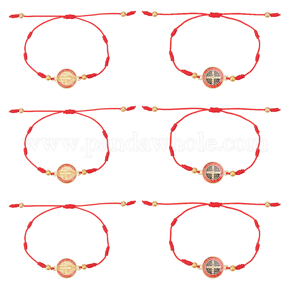 • Красный 6шт. набор браслетов из сплава с медалью Святого Бенедикта, регулируемые браслеты из полиэфирного шнура, красные, внутренний диаметр: 2-1/2~3-1/4 дюйм (6.5~8.3 см)