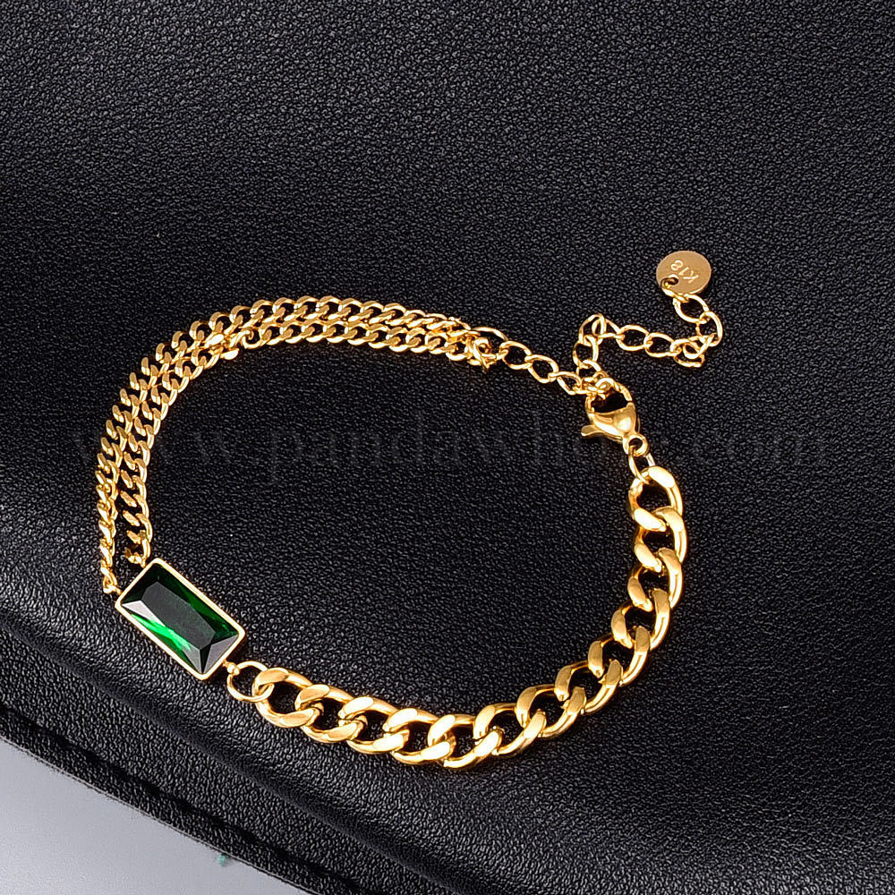 Браслет с прямоугольными звеньями из кубического циркония и 304 цепочками из нержавеющей стали