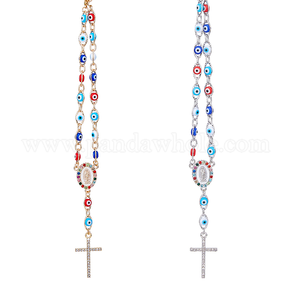 2 шт. 2 цвета сплава горный хрусталь крест подвеска браслет с цветной смолой сглаза бусины цепи, браслет-четки из бисера с латунными цепочками